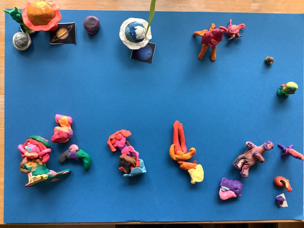 Die Klasse 3b beschäftigte sich mit dem Thema Weltraum und Planeten und lernten dabei, welche Besonderheiten der Alltag auf der ISS mit sich bringt und welche Planeten es gibt. Dabei wurden Aliens und Planeten geknetet, Raketen gebastelt und Weltraumplakate gestaltet. Raum zum Forschen an Planeten eigener Wahl und Fantasiereisen gemeinsam mit Außerirdischen gab es ebenfalls. Kreativität, Methodenwahl und das Verfolgen eigener Lerninteressen spielten dabei eine große Rolle.