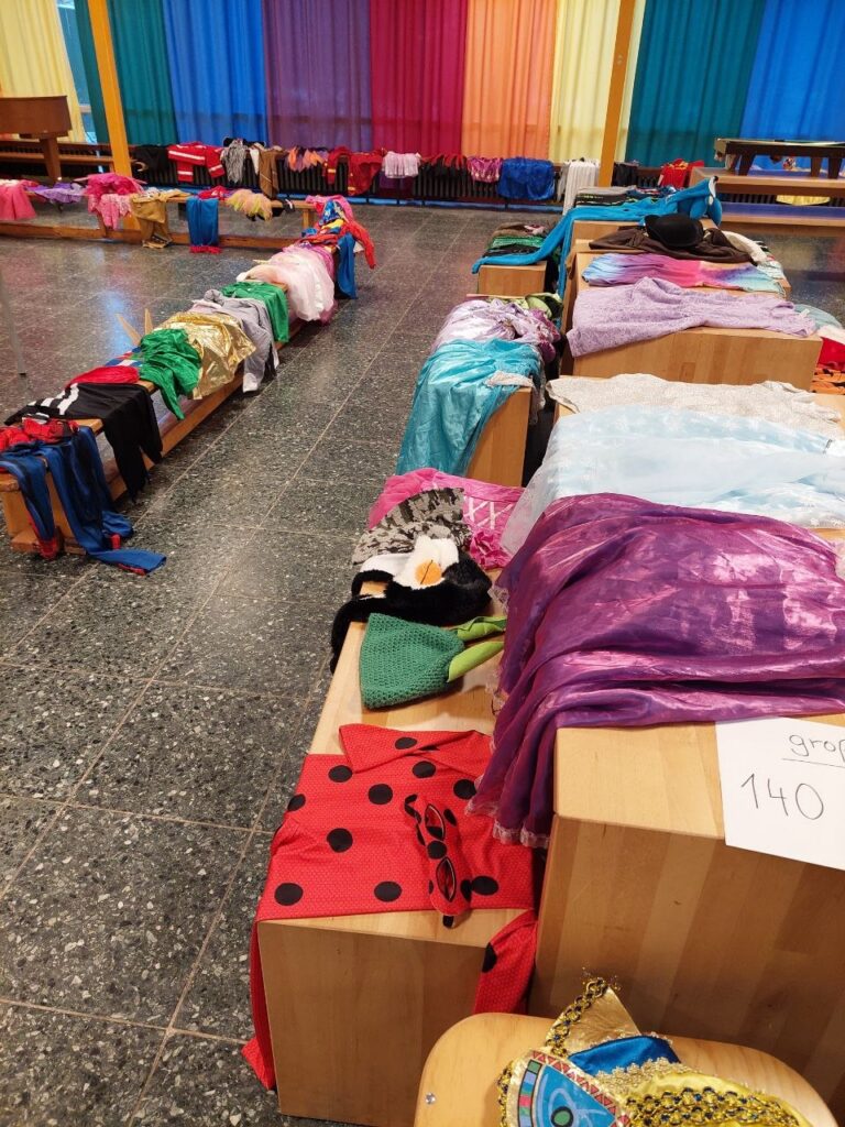 Am Freitag, den 6.02.2026, fand in der zweiten Stunde für alle Klassen unserer Schule eine fröhliche Kostümtauschparty statt. Bereits im Vorfeld konnten Kostüme abgegeben werden, wofür die Kinder Wertmarken erhielten, mit denen sie sich selbstständig ein neues Kostüm aussuchen und „kaufen“ konnten. Besonders engagiert waren die Kinder der kleinen Umweltgruppe: Sie nahmen die Kostüme an, legten sie in der Pausenhalle aus, betreuten die Kasse, berieten ihre Mitschülerinnen und Mitschüler und sorgten anschließend für Ordnung. Die Aktion förderte Selbstständigkeit, Verantwortung und machte allen Beteiligten großen Spaß.