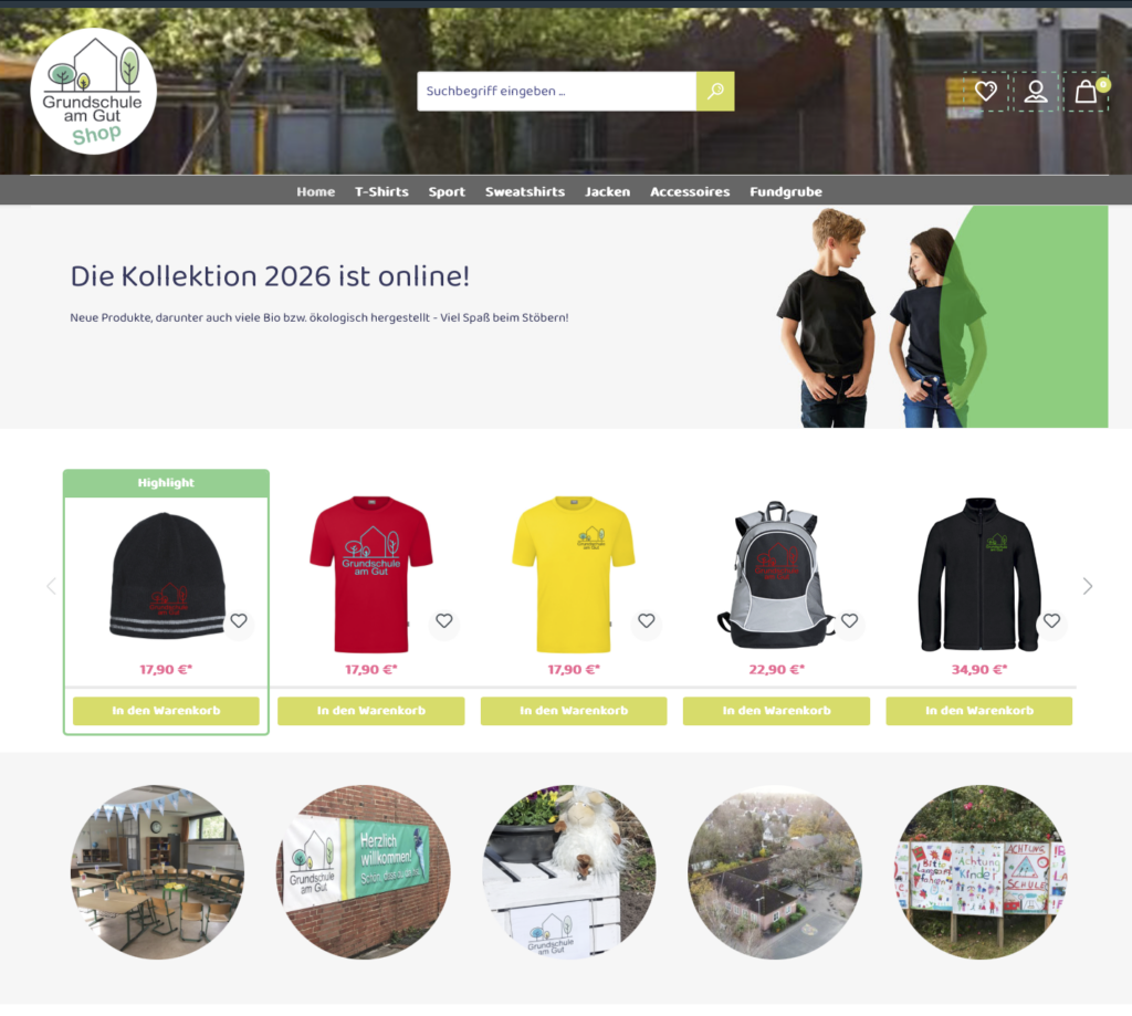 Sie können die Schulkleidung direkt über den folgenden Link oder QR-Code bei Brosch Textil bestellen: Am Gut Shop